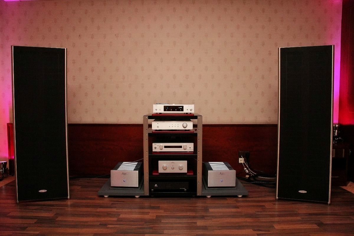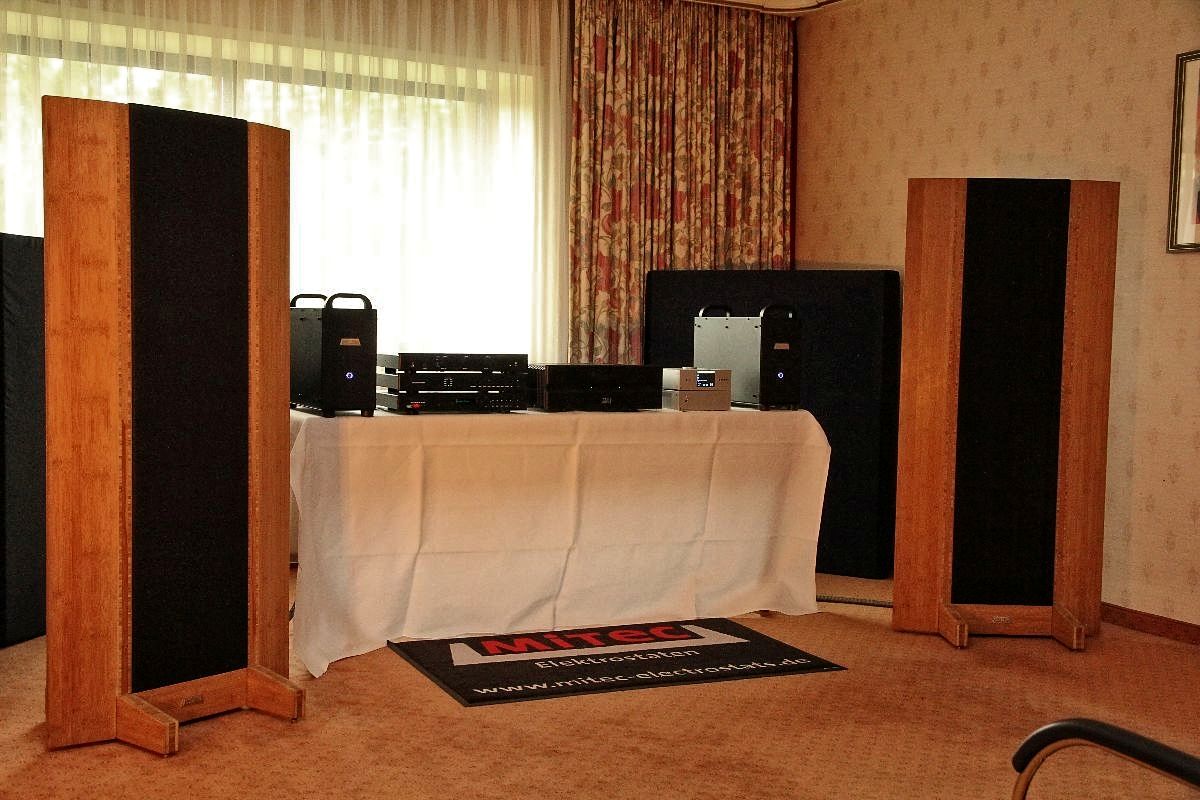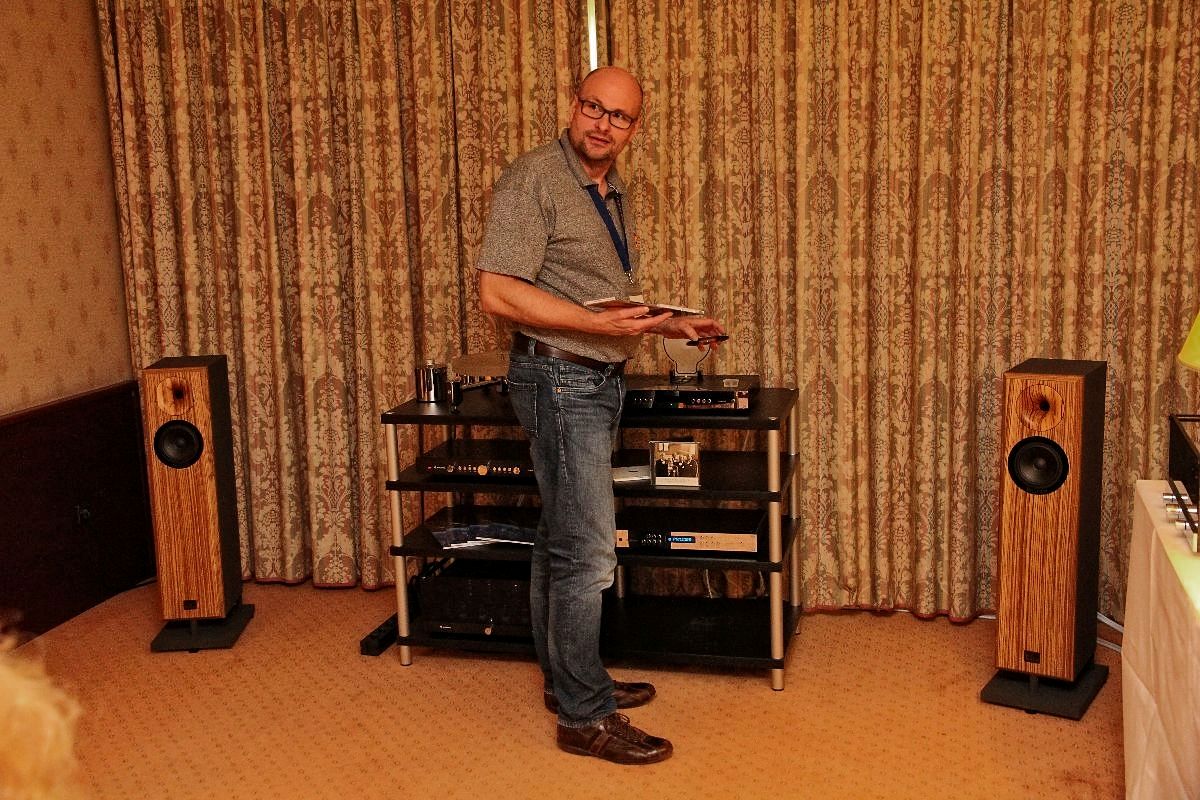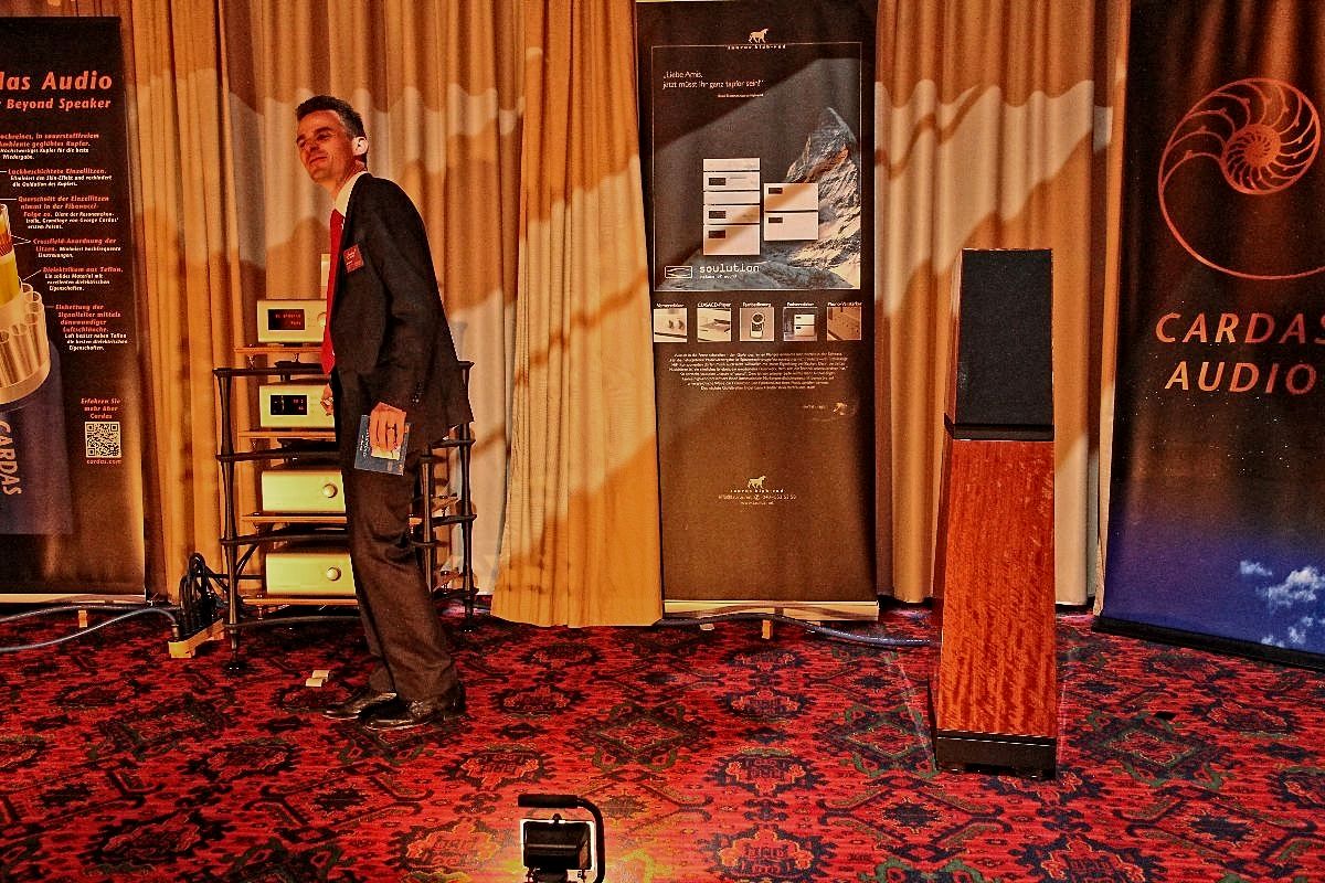 Allerdings gab es auch sensationell schwache Vorführungen zu entdecken. Das klang dann wie „Micky-Maus-HiFi“ ohne jeden Grip und mit teils sagenhaft lascher oder trötiger Ansprache. Ich sortierte etwa zwei Handvoll Setups – darunter auch renommierte Namen und Personen – unter Komplettvergeigung ein. (Passenderweise erlebten wir am Samstagabend dann auch ein offenbar völlig überfordertes Servicepersonal im Bar- und Restaurantbereich des Hotels, aber das nur am Rande.) Zum Glück gab es ja noch die vielen Guten, die Engagierten, die Herzblutigen unter den Ausstellern. Und die waren natürlich auch am Sonntag wieder am Start.