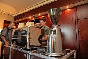 Übrigens spielten noch einige andere bezahlbare Systeme auf ähnlich hohem Niveau. Herausragend musikalisch und verblüffend dynamisch war etwa die Kette aus Croft-Elektronik und Harbeth-Lautsprecher, zum Klingen gebracht vom Musikexperten Thomas Krüger. Richtig Spaß verbreiteten auch neue Odeon-Modelle. Die Hörner wurden von exquisiter Röhrenelektronik aus dem Hause New Audio Frontiers bedient, die selbst vor der Hardcore-Musikauswahl, die Andrejs Staltmanis über das massive Reed-Laufwerk hineinströmen ließ, nicht zurückzuckten. Länger sitzen blieb ich auch im großen Raum von Gaudios (Marten-Lautsprecher) und bei Jan Sieveking, der große Veritys mit großer Soulution-Elektronik verbandelte. Und einiges zu erzählen hatte. Gleiches galt für Ulf „Unstoppable“ Soldan, der die neue 800er-Serie von Bowers & Wilkins bis ins Detail erklärte. Wer nach einer derartigen „Behandlung“, die in vielen Räumen in Bonn zu erleben war, einen Weltklasse-Kaffee brauchte, bekam diesen bei AVItech. Zwar hatte Barista Heinrich Schläfer diesmal kein selbstgebackenes Gebäck im Gepäck, aber eine brandneue, noch größere Espressomaschine. Selbstverständlich im brandneuen Flightcase. Da fiel das winzige optische Laufwerk für CDs von Bryston im Nebenraum fast gar nicht mehr auf. Ich entdeckte es trotzdem. Und fühlte mich schon wieder ein bisschen an die Achtziger erinnert.