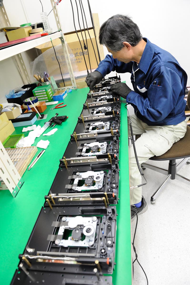 Der stets „genau richtig“ dimensionierte und geschmeidig zu bedienende Drehknopf weist auf eine weitere, nicht nur von Highendern geschätzte Disziplin hin: dauerhaft belastbare Präzisionsmechanik. Ein Musterbeispiel hierfür ist auf Knopfdruck bei den Digitallaufwerken zu entdecken. Die SACD- und CD-Laufwerke werden mit einer Toleranz von weniger als einem Mikrometer (µ: ein Tausendstel Millimeter) im Hause gefertigt. Die Schublade fährt entsprechend ultrageschmeidig heraus und wieder hinein, im Betrieb verhält sich ein Digitalplayer von Accuphase nahezu mucksmäuschenstill. Das verschafft dem Benutzer ein dauerhaft angenehmes, zudem berechtigtes Gefühl von Solidität und Zuverlässigkeit.