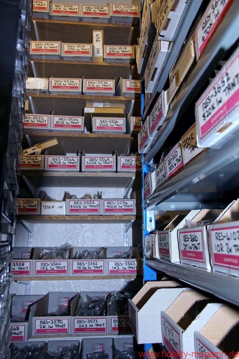 Solche Neuentwicklungen bedeuten nicht nur einen enormen Zeitaufwand, sondern auch beträchtliche Investitionen. Die südenglische Manufaktur ist jedoch hartnäckig bestrebt, klanglich bewährte Schaltungen und Technologien mit eigenen, spürbar besseren Bauteilen entscheidend zu optimieren. Jüngste Beispiele hierfür sind spezielle Silber-Tantal-Widerstände sowie eine neue Elko-Serie namens „Kaisei“. Diese haben Grove und Qvortrup in Zusammenarbeit mit Rubycon entwickelt, sie wird vom renommierten japanischen Spezialisten exklusiv für AN gefertigt und gilt als adäquater Nachfolge für die gesuchten, längst vergriffenen Black-Gate-Kondensatoren, deren Bestände selbst im riesigen AN-Teilelager allmählich zur Neige gehen.