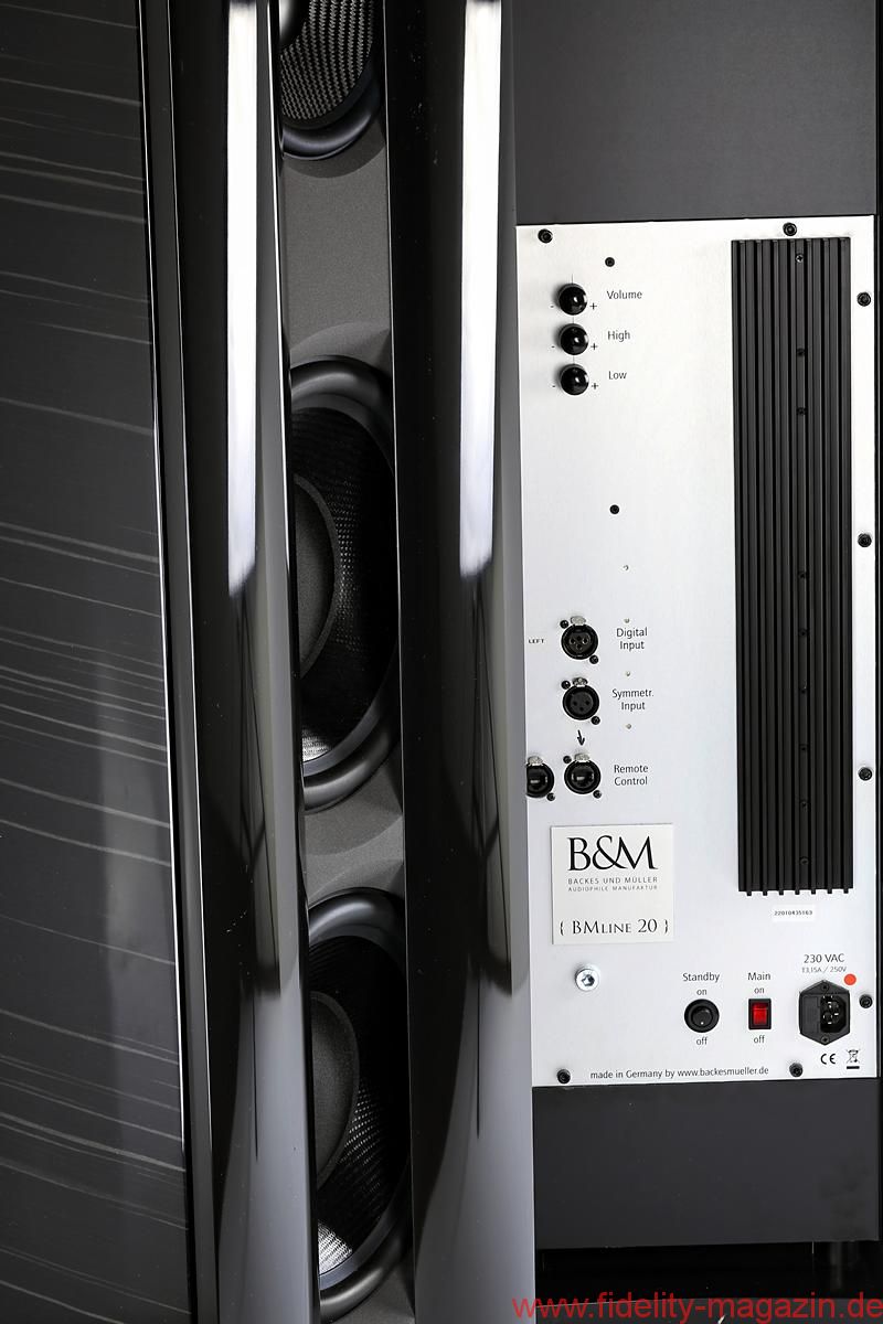 Das Lautsprechersortiment von Backes & Müller unterteilt sich heute in die mit herkömmlicher analoger Filtertechnik ausgestattete Prime-Serie und die hochwertigere Line-Serie, in der die von KSdigital stammende digitale FIRTEC-Filtertechnologie zur Anwendung kommt. Beide Linien verfügen im tieferen bis mittleren Frequenzbereich über die bewährte Rückkopplungstechnik mittels kapazitiver und induktiver Sensoren, während in höheren Tonbereichen im Sinne eines weniger harten und analytischen Klangbildes auf diese Dynamic Membrane Control (DMC) verzichtet wird. Laut Siegler stellt es eine glückliche Fügung dar, dass die von ihm mitentwickelte digitale Entzerrung durch FIR-Filter mit endlicher Impulsantwort (Finite Impulse Response), die eine extrem phasen- und zeitgenaue, räumlich präzise Wiedergabe und Dynamik des Musiksignals und sogar dessen Anpassung an die Abhörposition im Raum ermöglicht, erstmals mit der ihrerseits auf Impulsgenauigkeit ausgerichteten analogen Rückkopplungstechnik in einer Lautsprecherlinie kombiniert werden konnte. Darüber hinaus verfügen die Line-Modelle 35 und 50 über die NExT-Technologie (Nearfield Extension): Ein spezieller Schlitzstrahler sorgt hier dafür, dass der Schall ab 800 Hertz nicht kugel-, sondern zylinderwellenförmig abgestrahlt wird. In Verbindung mit einem besonders kräftigen Antrieb führt dies zu einer signifikanten Ausdehnung des Nahfeldes. Zudem kann bei der Line-Serie das Gehäuse hinsichtlich Holzart und Lackierung weitgehend nach individuellen Wünschen gestaltet werden. In den sandwichartig aufgebauten Schallwänden kommt zur Reduzierung von Eigenschwingungen der Kunststeinverbundstoff Corian zum Einsatz.