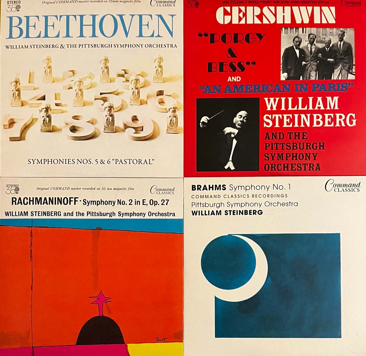 Command Records wurde 1959 von Enoch Light gegründet und suchte alsbald den Kontakt zu Steinberg. Während die übrige Schallplattenindustrie das Magnetband zum Standard für Vinylaufnahmen gemacht hatte, wurden die Alben von Command auf 35-Millimeter-Film aufgenommen. Light nutzte die Breite des Filmstreifens, um mehrspurige Aufnahmen zu erstellen, im Gegensatz zu den begrenzteren zwei oder drei Spuren, die von den meisten Aufnahmestudios zu dieser Zeit angeboten wurden. Die etwas höhere lineare Geschwindigkeit bot einen Vorteil bei der analogen Wiedergabetreue, und der mit Zahnrädern betriebene Film begrenzte die Gleichlaufschwankungen („wow and flutter“). Dies ermöglichte es Light, mehr Instrumente einzeln aufzunehmen und ihre Eingangspegel anzupassen. Will man bei diesen audiophilen Aufnahmen die spezifische Interpretationsweise Steinbergs erfassen, so lohnt es sich, zunächst die Aufnahmen der klassisch-romantischen Sinfonik anzuhören. Steinberg orientiert sich bei fast allen Sätzen der Beethovensinfonien an den Metronom-Angaben des Komponisten, Temposchwankungen und agogische Freiheiten werden überwiegend vermieden. Steinberg schöpft die Beethoven’sche Energie allein aus dem Notentext heraus – es ist eine gänzlich uneitle, aber sehr wirkungsvolle Musizierweise. Auch den Sinfonien Brahms’ nimmt er den schweren germanischen Duktus. Unter Musikwissenschaftlern gibt es ja das Bonmot, die permanente Modulationsarbeit bei Brahms lasse dessen Musik immer an die Gründung von Krupp-Stahl denken … Nichts davon ist hier bei Steinberg zu spüren. Mehr noch, bisweilen lässt er Brahms geradezu singen und tanzen. Mindestens genauso bemerkenswert ist der amerikanische Pool dieser Compilation. Steinberg ist es immer eine Herzensangelegenheit gewesen, Komponisten wie Gershwin, Copland oder Rodgers aufzuführen. Bewundernswert die interpretatorische Akribie und der Sinn für rhythmische Komplexität und orchestrale Farbenpracht, die Steinberg hier gemeinsam mit dem Pittsburgh Symphony Orchestra an den Tag legt.