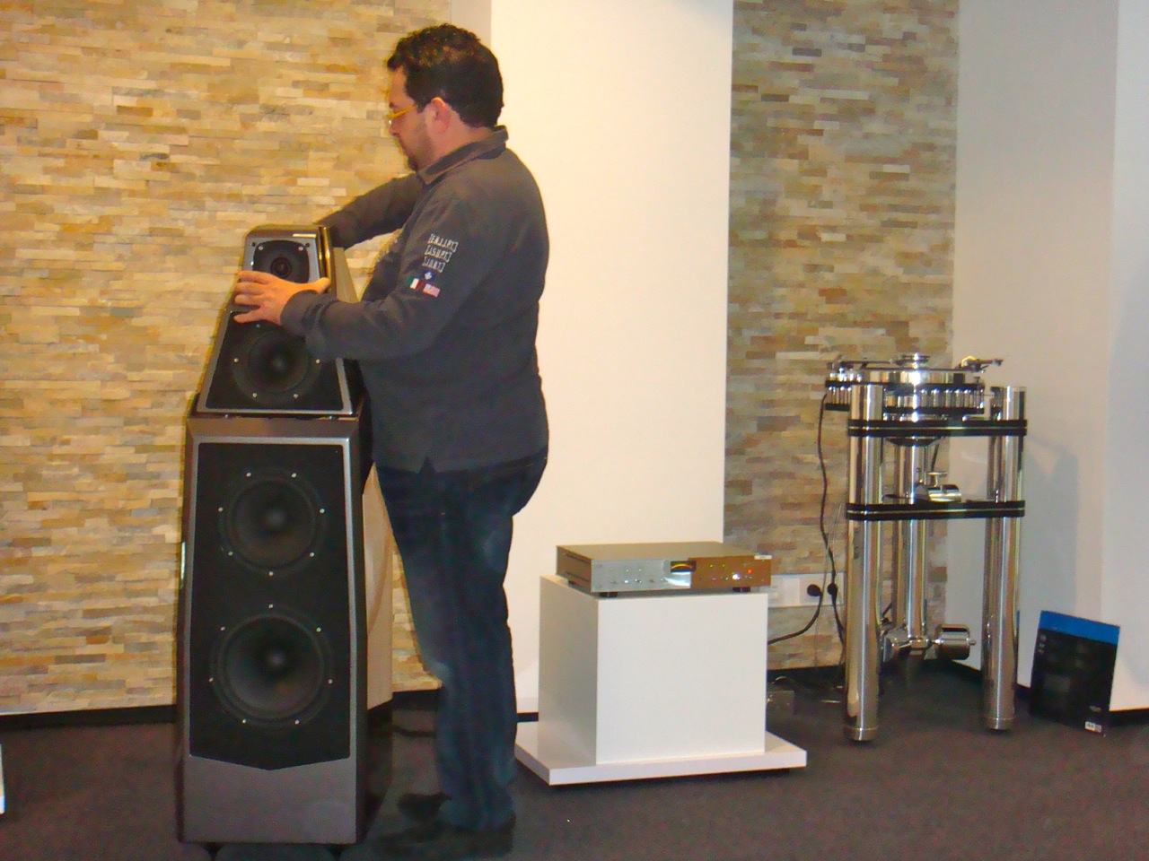 Die Performance der Alexia konnte auch mit gänzlich anderem Musikmaterial auf ganzer Linie überzeugen. Während Peter McGrath sichtlich zufrieden eine kleine Verschnaufpause nahm, bewiesen erst Antonio Minore, dann Manuel Pinke (beide vom Deutschland-Vertrieb Audio Components) mit rasantem Jazz-, Rock- und sogar Dub-Material, dass dieser Lautsprecher offenbar keine Genregrenzen kennt.