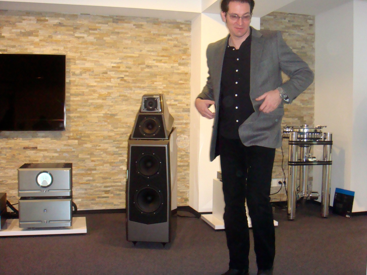 Extra aus Florida angereist war Wilson-Audio-Vertriebschef Peter McGrath, der die jüngste Entwicklung des US-Unternehmens mit echter Begeisterung vorstellte. McGrath, der einst gemeinsam mit Mr. Mark Levinson das Recording-Business erlernte, unterfütterte seine Vorführung mit zahlreichen exquisiten Live-Aufnahmen aus eigenem Fundus, vorzugsweise Mitschnitte von zeitgenössischer Klassik und Barockmusik, die er in Miami und San Francisco selbst angefertigt hatte.