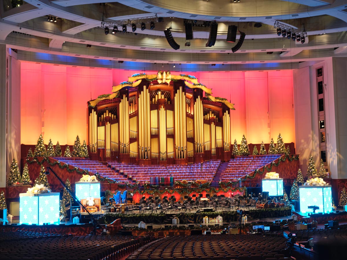 9.30 Uhr: Im Saal hebt der Dirigent den Taktstock, es erklingen die ersten Takte eines alten Kirchenliedes. Ab sofort herrscht im Tonstudio neben dem Conference Center Rundfunk-Atmosphäre. Jetzt muss jeder Handgriff sitzen, Fehler darf es keine geben, denn die würden dem Publikum rund um den Globus sofort auffallen. Trent Walker wirkt dennoch so ruhig, als würde er sich gerade seinen Morgenkaffee aufbrühen. Er lauscht, justiert die satt laufenden Schieberegler auf seiner Konsole behutsam nach und kann sich dabei auf ein Ensemble verlassen, das zur Weltelite zählt: Der Mormon Tabernacle Choir und das zugehörige Orchestra at Temple Square zählen zu den gefragtesten Klassik-Klangkörpern der Welt. Starsolisten wie der gefeierte Bass Bryn Terfel standen mit diesem Ausnahme-Ensemble auf der Bühne. Aufnahme-Guru Trent Walker war für seine exzellent klingenden Aufnahmen aus dem Tabernakel auch schon für den Grammy nominiert. Amerikas Präsidenten nennen Chor und Orchester einen „nationalen Schatz“.