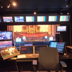 9.29 Uhr: Das Mischpult, an dem Trent Walker die Kanäle der Raummikrofone gerade feinfühlig von Hand abgleicht, ist eine 128-Kanal-Digitalkonsole von SSL (Solid State Logic). Nur eines von mehreren Regiepulten, die punktgenaue Korrekturen in Echtzeit ermöglichen. Walker ist ein großer Freund analogen Sounds. So wundert es auch nicht, dass der finale Downmix für den Broadcast in Stereo und 5.1 folgerichtig auf einer API-Vision-Konsole mit ebenfalls 128 Kanälen entsteht. Aufgenommen wird generell parallel analog und digital, eine Kopie liegt stets auf der Festplatte, für Musikproduktionen wird aber das Analogband verwendet.