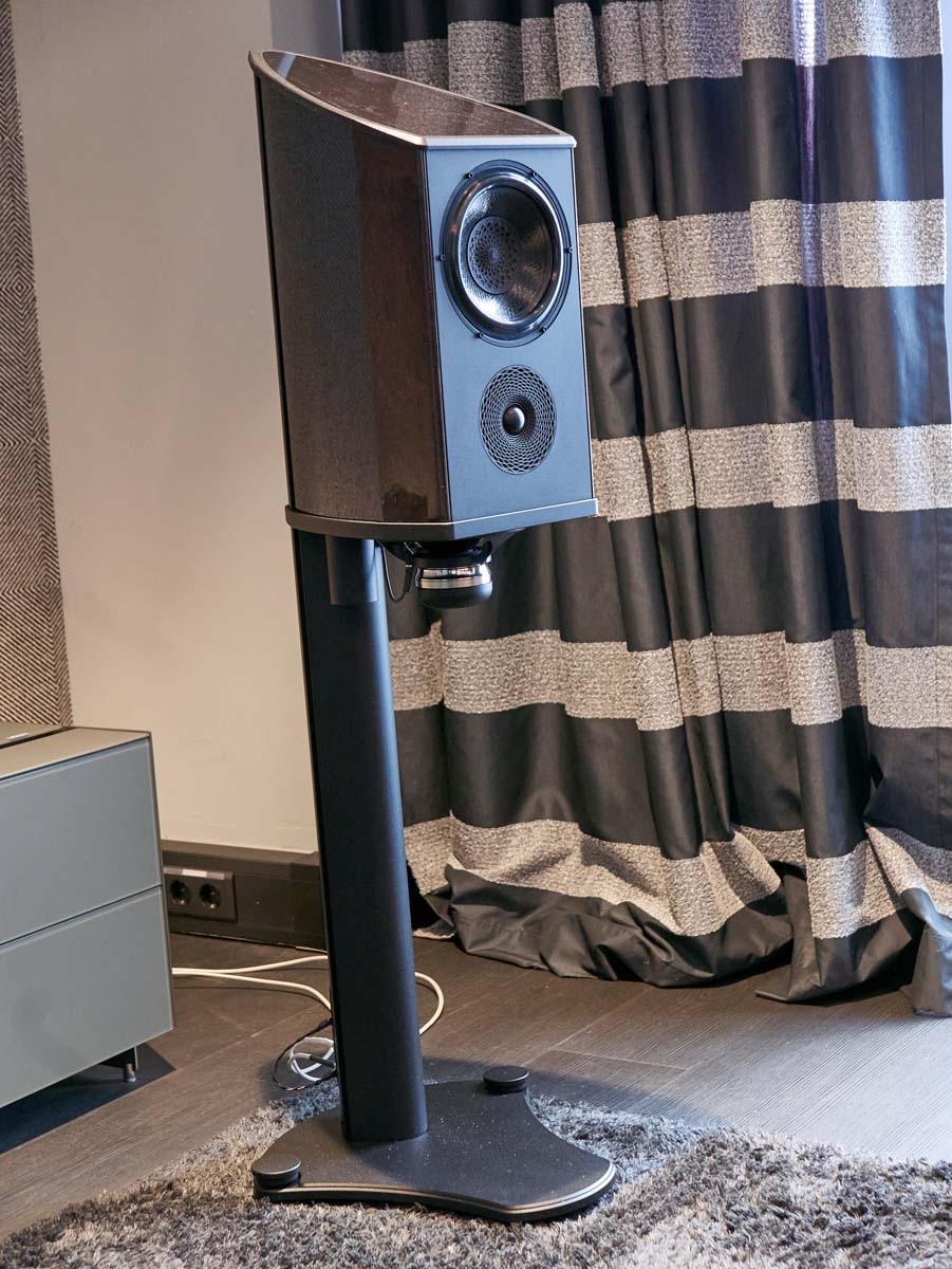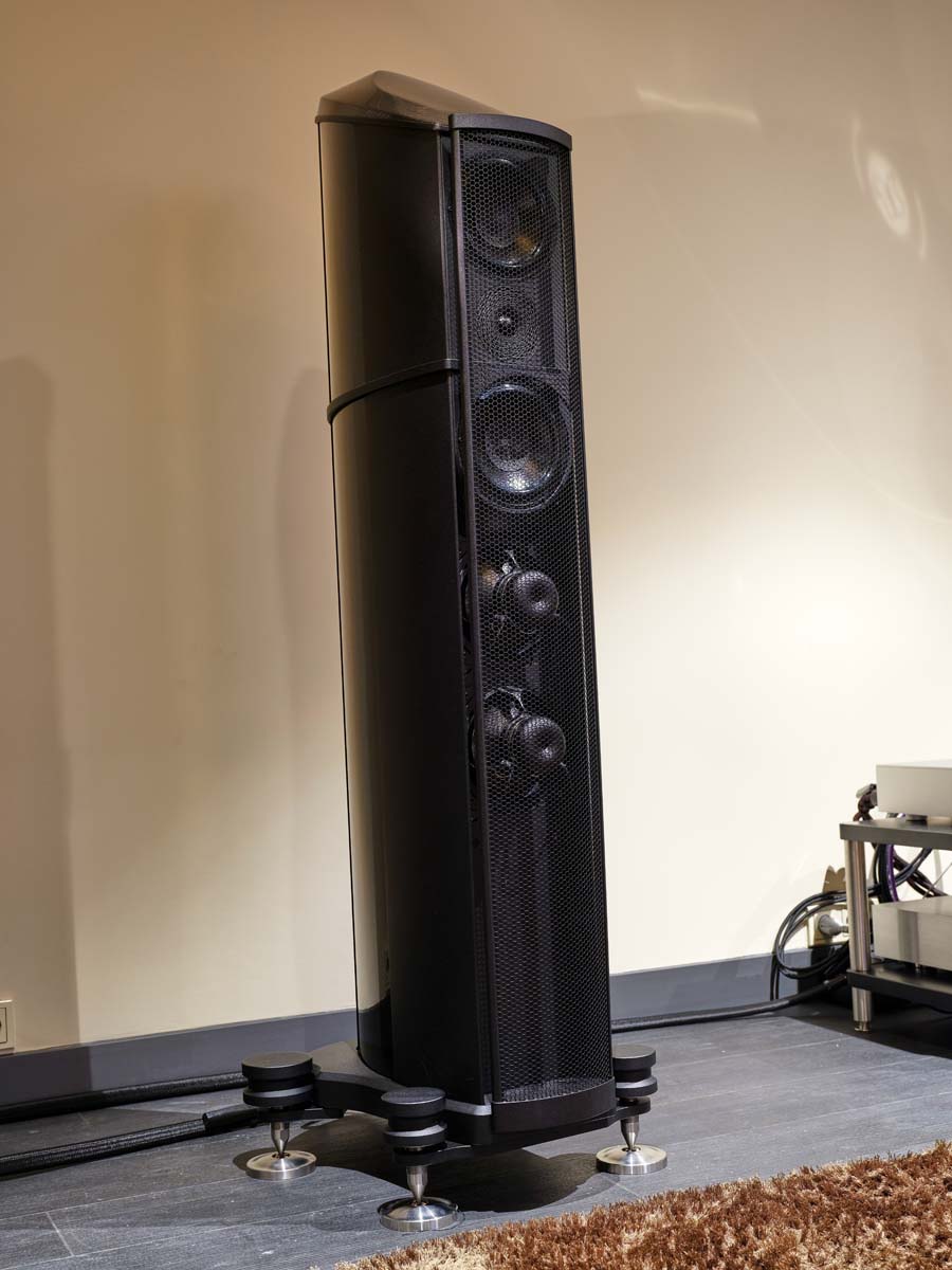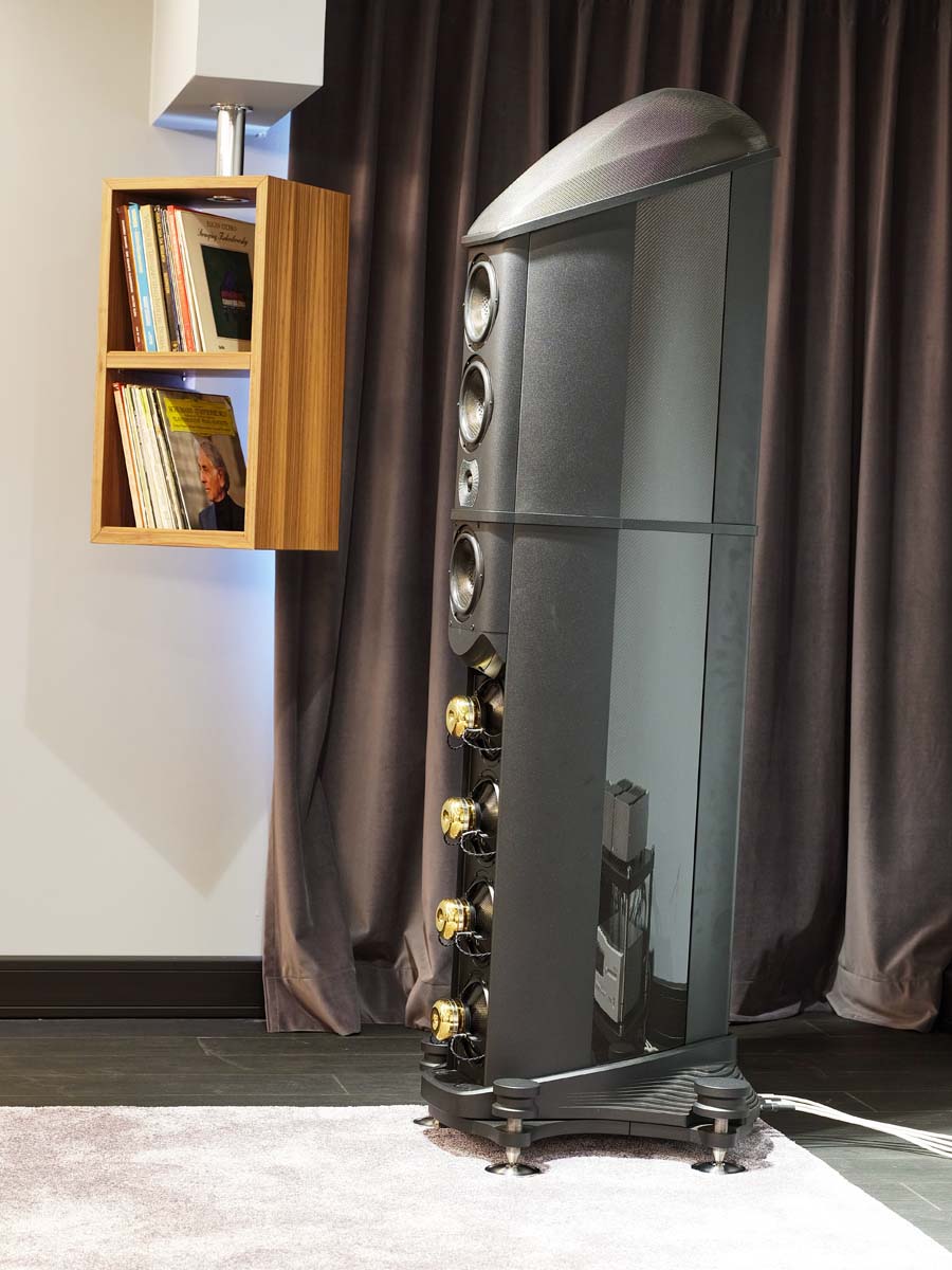 Besonderheiten: Gehäuse-Monocoque aus Carbon/Kompositmaterial, geschlossener Woofer mit isobarischem Basskonzept, justierbare Spikes mit Bodenschonern