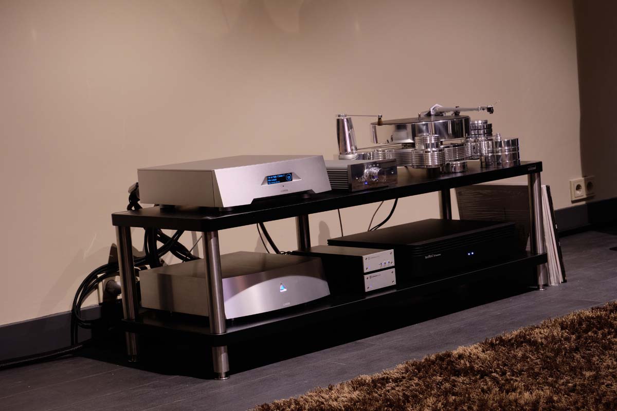 Luke Milnes hielt mir im Verlauf unseres Gesprächs einen Tonarm unter die Nase. Bis zu diesem Augenblick hatte ich die Briten als reinen Lautsprecherhersteller abgespeichert. Der Urahn des nahezu schwerelosen Carbonarms bildete 1989 sogar die Keimzelle des Unternehmens. Man mag es glauben oder nicht, doch fertigen und verarbeiten die Briten praktisch all ihre Hightech-Zutaten vor Ort in Sheffield. Lediglich bei Veredelung und Finish verlassen sie sich auf Partner aus der Automobilindustrie. Zum Arm gehört ein federleichtes Titangewicht, das Wilson Benesch in einem 3D-Drucker herstellt. Natürlich benötigt eine Standbox von zwei Meter Höhe und mit einem Kampfgewicht von knapp 150 Kilo kein filigranes Gegengewicht. Doch bezeugt das federleichte Gebilde in meiner Hand, auf welchem technischen Niveau sich die Briten bewegen.