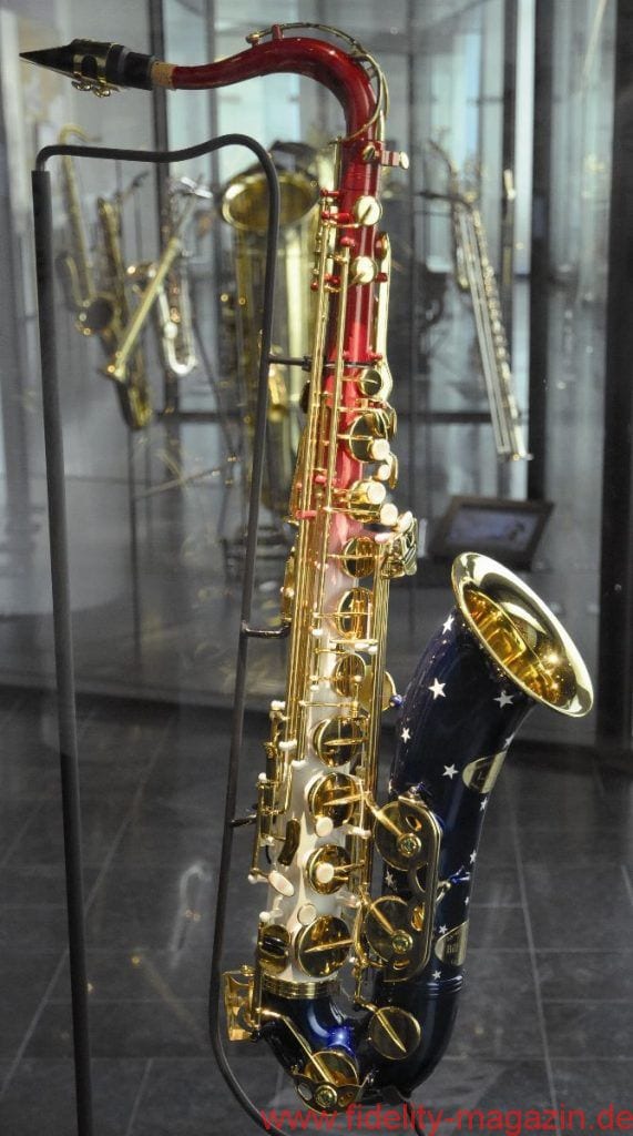 Das „Musée des instruments de musique / Muziekinstrumentenmuseum“ (MIM) in Brüssel würdigte den Saxophon-Erfinder gebührend. Das meistfotografierte Exponat der Sonderausstellung „Sax 200“ war ein – mit Stars und Stripes dekoriertes – Instrument. Der Polit-Profi und Amateur-Saxofonist Bill Clinton hatte es geschenkt bekommen. „Es wurde uns vom National Music Museum in Vermillion, South Dakota, als Leihgabe zur Verfügung gestellt und befindet sich in einem sehr guten Zustand. Man kann sehen, dass der Ex-Präsident nur selten darauf gespielt hat“, schmunzelt MIM-Pressesprecher Jo Santy.