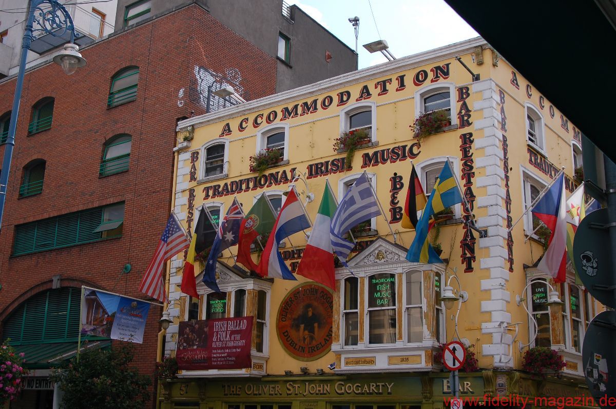 Irgendwo auf der grünen Insel oder auf irgendeiner der dazu gehörenden Inselchen findet immer irgendein musikalisches Event-Marathon statt. Außer in Dublin. Die Stadt schmückt sich lieber mit dem Titel „UNESCO City of Literature“ und hat eigentlich keine Musik-Festivals nötig. Denn die mehr als eine halbe Million Einwohner von Baile Átha Cliath – so der gälische Name von Dublin – werden musikalisch rund um die Uhr bestens versorgt. Der Kurzurlauber – zwei Stunden von Hamburg, eine halbe Stunde mehr ab München – steigt in den Airport-Bus, lässt sich in das Zentrum von Dublin fahren und landet in Temple Bar. In diesem Stadtviertel harmonieren Subkultur und Entertainment, Nightlife und Traditionspflege bestens miteinander. Bei Tag sind hier alle Katzen grau. Nur die Straßenmusiker und die farbenfroh gestalteten Häuserfronten – ab und zu auch mal ein berittener Polizist – sind die einzigen Touristen-Attraktionen.