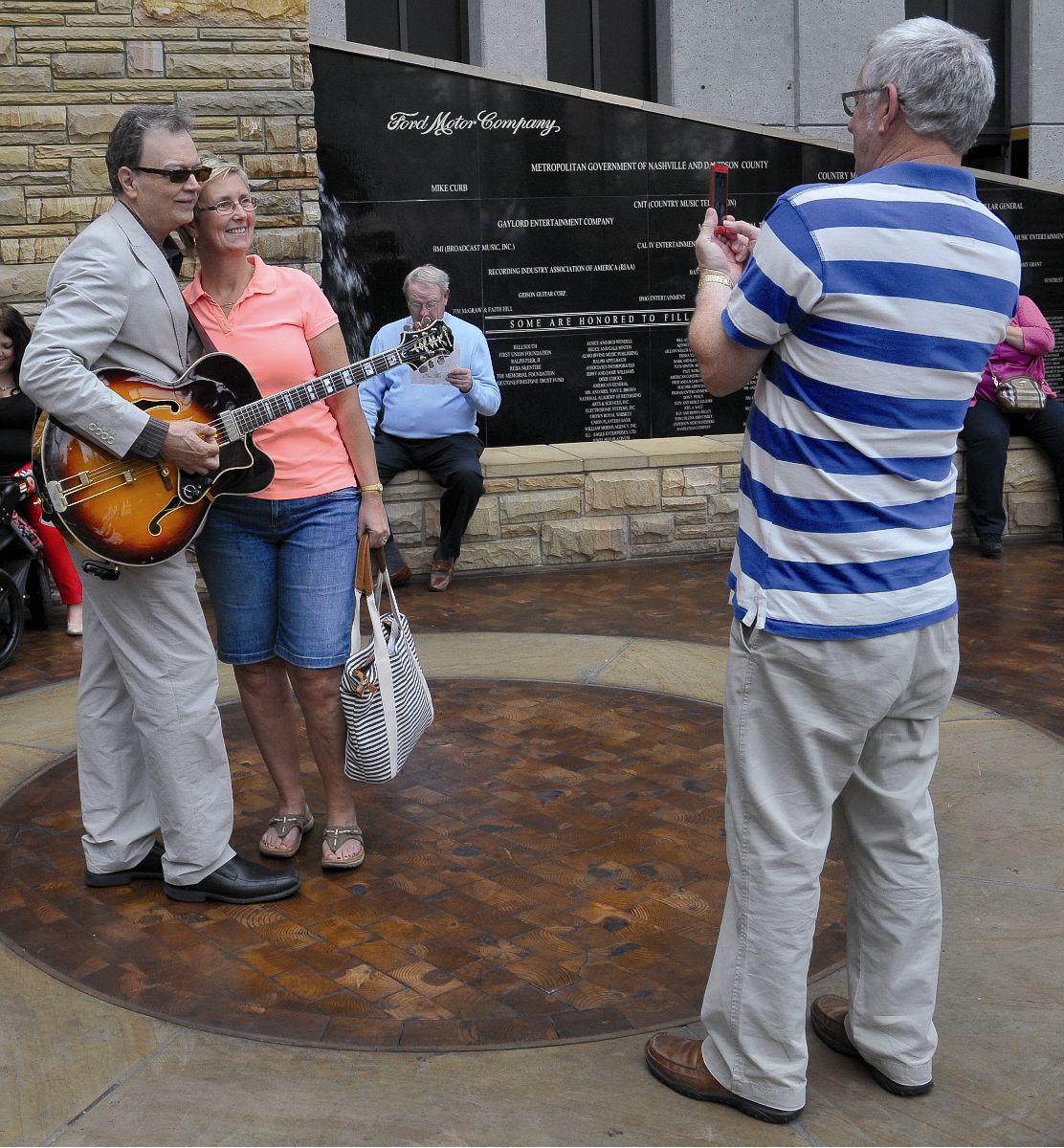 Als “Ambassador of Music City” schüttelt der Gitarrist David Andersen Touristenhände.