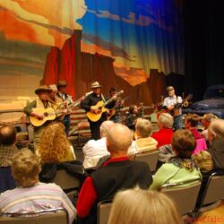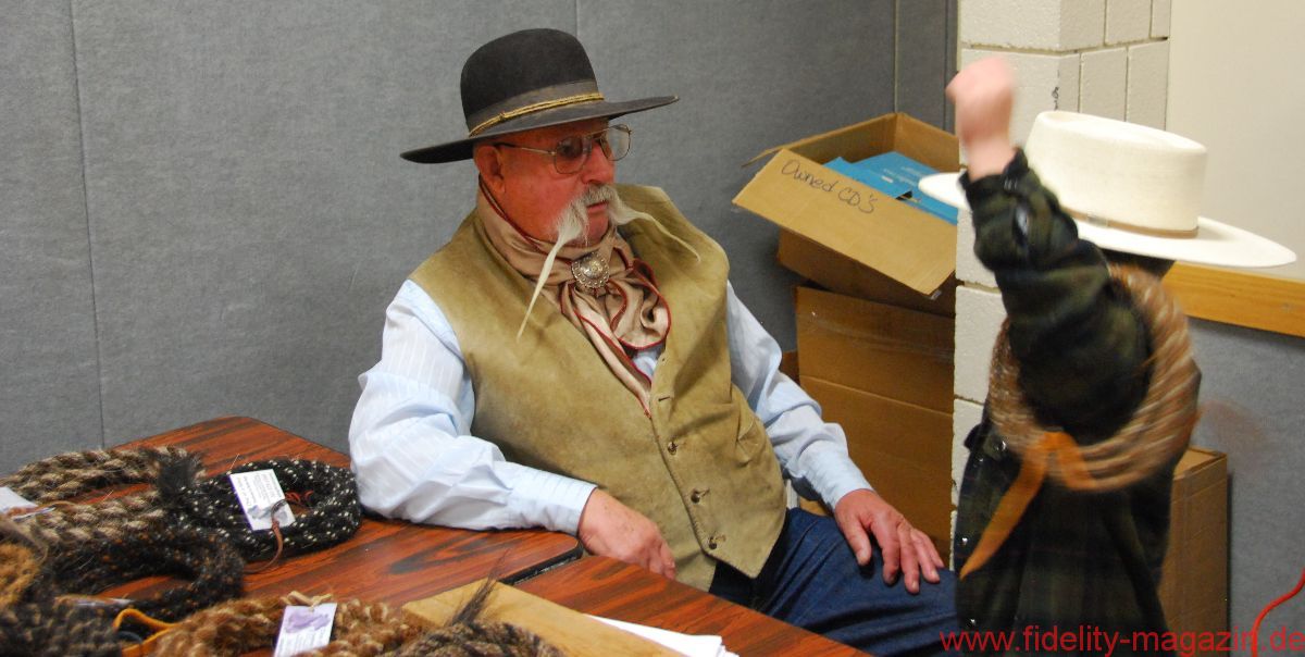 Ein gern gesehener Gast bei diesem Familientreffen der Cowboykultur-Schaffenden ist Ramblin’ Jack Elliot, geboren 1931. Zu seinen Verehrern gehörten Johnny Cash und andere Folk- oder Country-Stars. Bob Dylan hatte dem Ramblin’ Jack jene Gitarren-Zupftechnik abgelauscht, die Elliott als Weggefährte des Folk-Paten Woody Guthrie kennen gelernt hatte. Im Gegenzug gehörte Ramblin’ Jack zu den ersten Interpreten von Dylan-Songs. Wenn er heute „Don’t Think Twice It’s Alright“ singt, bezeichnet der Cowboy-Traditionspfleger den Songwriter immer noch gerne augenzwinkernd als seinen „Sohn“.