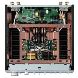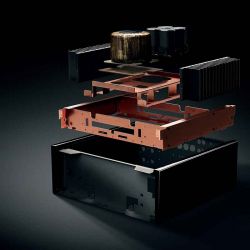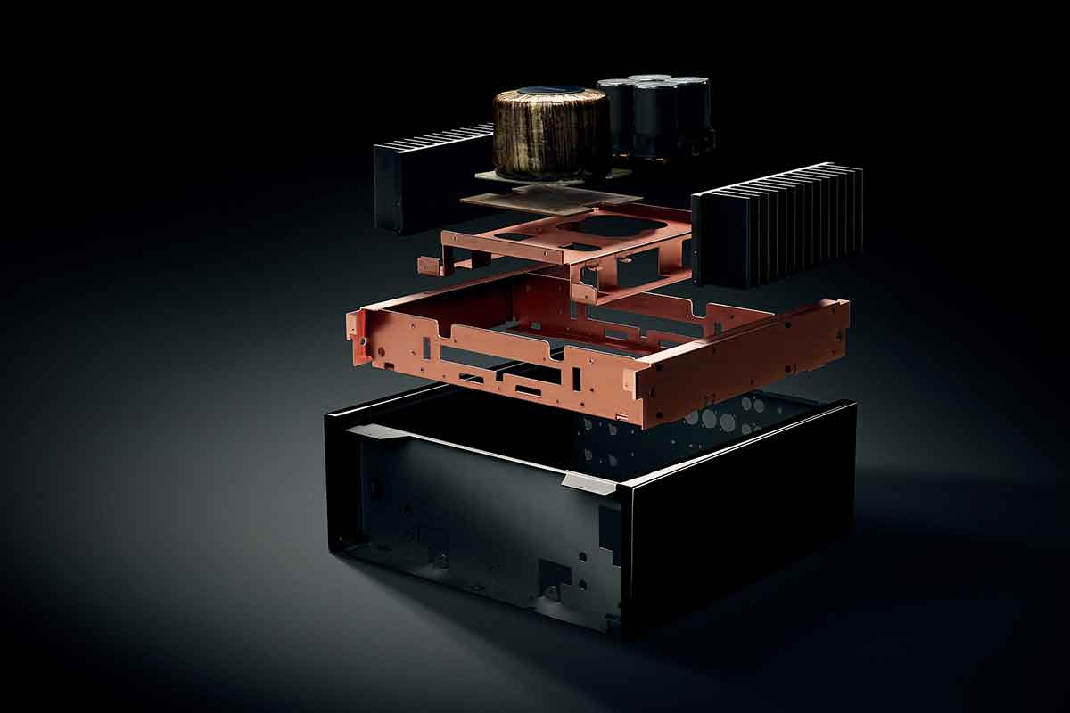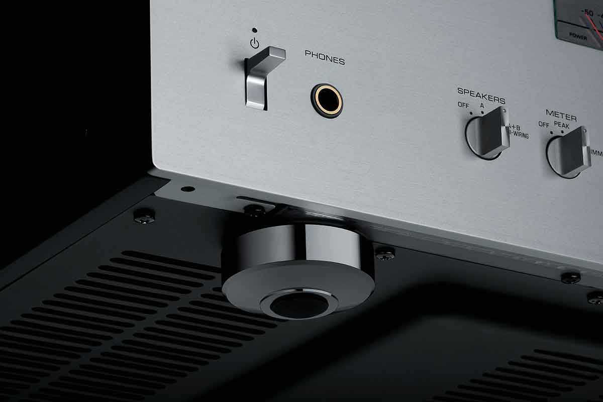 Die komplette Konstruktion der HiFi-Verstärker ist auf packenden, unverfälschten Klang ausgelegt. Das zeigt sich an den massiven Schraubklemmen für die Lautsprecher ebenso wie an den großen VU-Metern. Sanft beleuchtet vermitteln sie auch visuell die Dynamik und den ‚Puls’ der Musik. Dank maximierter Steifheit trägt das gesamte Gehäuse zu ausdrucksstarken, präzisen Bässen bei. Insbesondere das mechanische Erdungskonzept eliminiert unerwünschte Vibrationen und verleiht der Musik einen ausdrucksstarken Groove. Hierfür sind der große Leistungstransformator, die Blockkondensatoren und der Kühlkörper direkt mit dem Chassis verschraubt. Außerdem sind die Schrauben der Standfüße direkt mit dem Hauptgehäuse verschweißt. Die robusten, versilberten Standfüße selbst bilden das passende Fundament für den exzellenten Klang der A-S Serie. Beim A-S2200 sind die Füße aus Messing gefertigt, beim A-S3200 kommt zudem eine spezielle Konstruktion zum Einsatz, sodass die Füße auch als Spikes verwendet werden können.