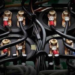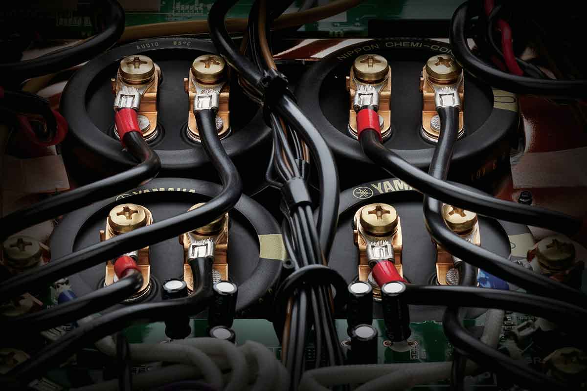 Die A-S HiFi-Verstärker erschaffen vor dem Hörer eine offene, natürliche Klangbühne und bringen ihm damit den Künstler noch näher. Hierfür ist im Verstärker eine niedrige Impedanz wichtig. Zu diesem Zweck verfügen alle A-S Modelle über Kabel mit besonders großem Durchmesser für die Masseverbindungen. Bei A-S2200 und A-S3200 sorgt die vollsymmetrische Schaltung von Eingang bis Ausgang zudem für verbesserte Kanaltrennung und einen überragenden Signal-Rausch-Abstand. Beim A-S3200 verwendet Yamaha Messingschrauben für die Blockkondensatoren. Das gewährt ihnen zusätzlichen Headroom und trägt so zur breiten und offenen Klangbühne bei.