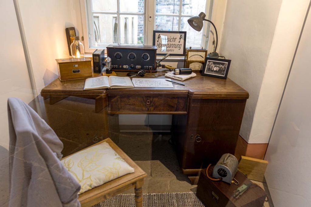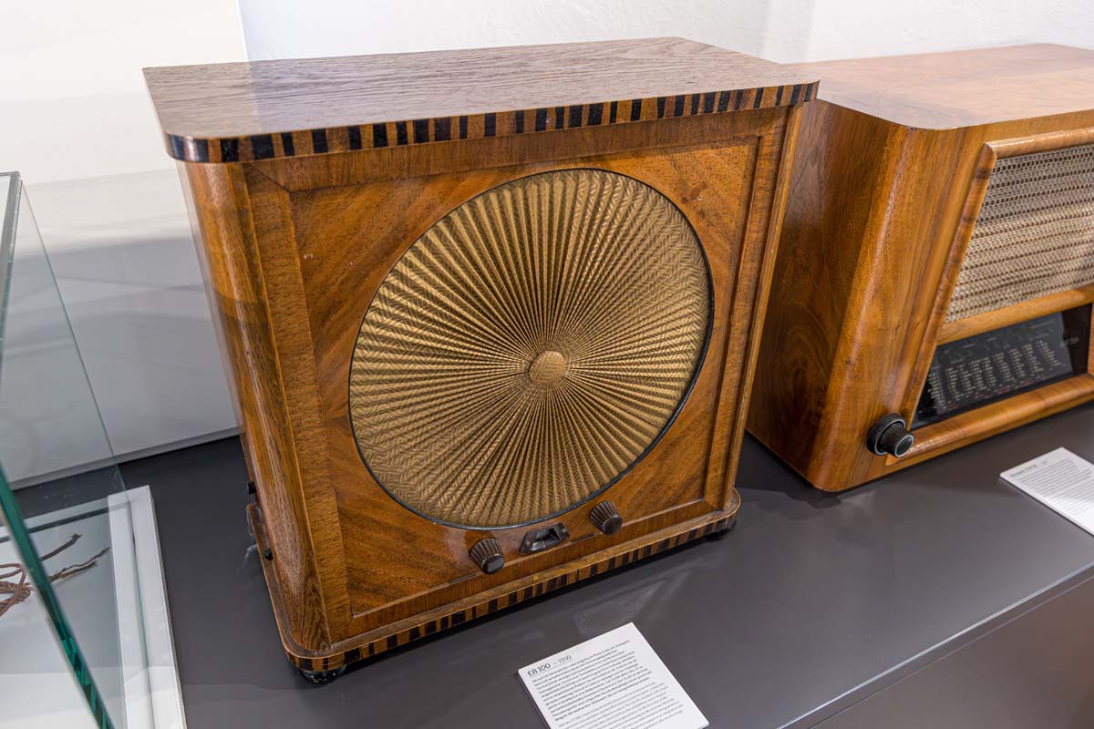 Wie Sie vermutlich mitbekommen haben, fällt der jüngste Reigen an Loewe-Neuentwicklungen nicht einfach so vom Himmel. In diesem Jahr (2023) begeht das Unternehmen seinen 100sten Geburtstag. Nach unserem Besuch im firmeneigenen Showroom entführte uns Alfred Hassaoui auf die Festung Rosenberg, die als eine der letzten vollständig erhaltenen Zitadellen hoch über der historischen Altstadt thront. Dort läuft über das gesamte Jahr eine Sonderausstellung zur Firmengeschichte. Die zahlreichen Exponate wurden von ehemaligen Mitarbeitern und Liebhabern der Marke zusammengetragen – Loewe selbst besitzt aufgrund der bewegten Geschichte nur noch ein rudimentäres Produktarchiv.