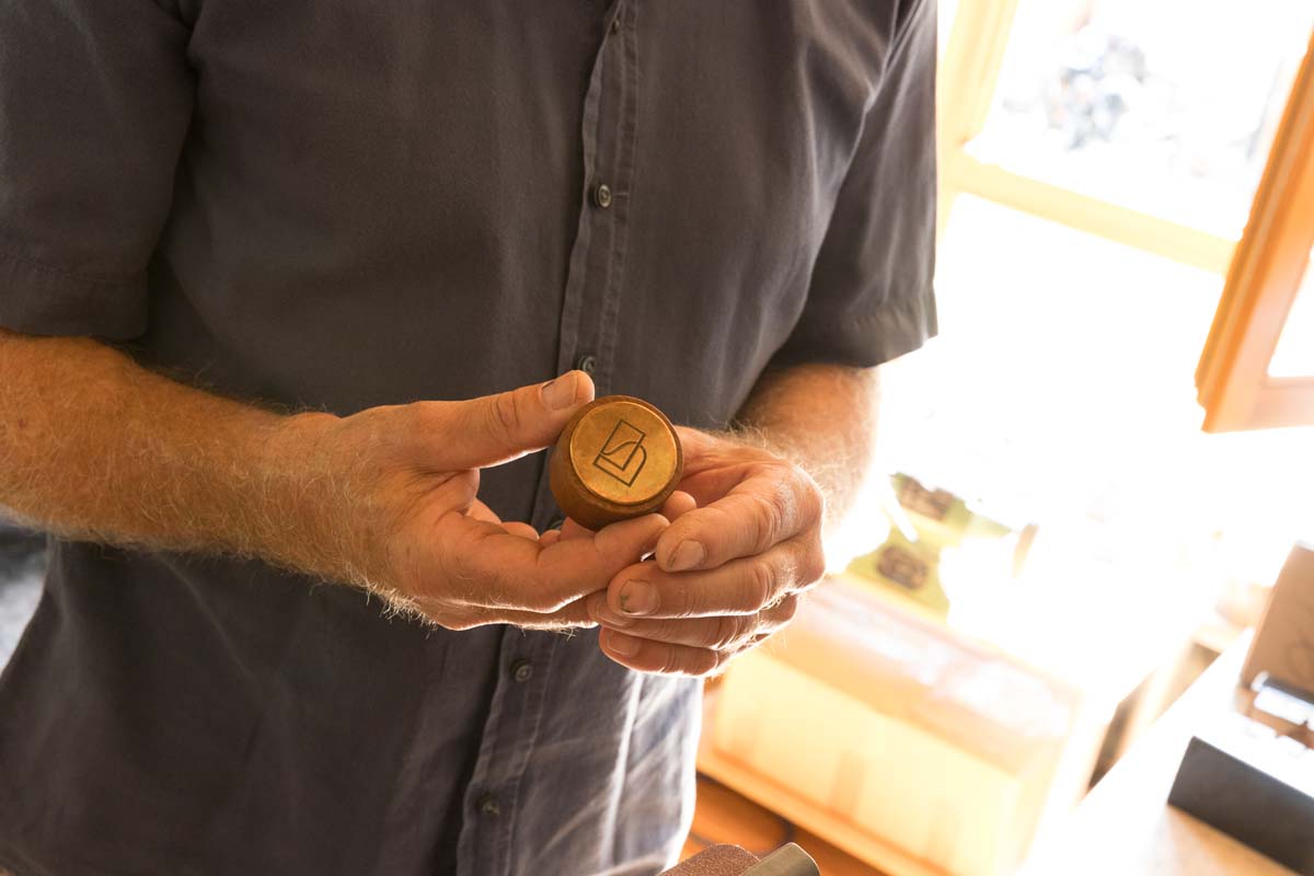 Wobei wir betonen sollten, dass auch die Fertigungstiefe an sich bemerkenswert ist: Da Michael Symann jeden einzelnen Schritt in der Hand haben möchte, beginnt seine Arbeit an einem neuen Soundboard mit dem Zuschneiden der erforderlichen Bretter. Im hinteren Bereich der Schreinerei erspähe ich einen vollständigen Stamm aus Sapeli-Mahagoni – das ist der dunkle Holzstreifen in der Mitte der Schallflächen. Das Holz kommt auch bei den Seitenwänden und als Decke zum Einsatz. Bei dem helleren Material handelt es sich um Fichte. Da jeder Lautsprecher im Kundenauftrag gebaut wird, kann Michael Symann Wünsche hinsichtlich der optischen Gestaltung erfüllen. Das habe freilich Grenzen, da er an die auch im Instrumentenbau gebräuchlichen Hölzer gebunden sei. Eine Lackierung nach Wunsch sei aber problemlos machbar.