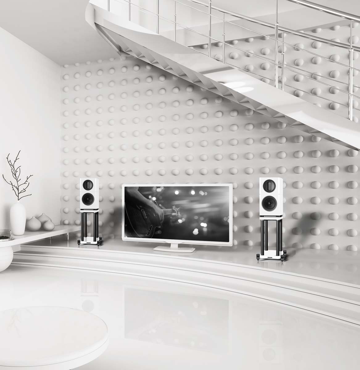 Auch die abgerundet gestalteten Gehäuse der Elysian Lautsprecher verdeutlichen die konsequente High-End-Ausrichtung der Serie, bringt die aufwändige Konstruktion doch eine Fertigungsdauer von mehreren Tagen mit sich – für jeden einzelnen Lautsprecher. Dabei trägt die Form nicht allein zu einer edlen Ausstrahlung bei, sondern hat zudem maßgebliche akustische Vorteile: Das Fehlen paralleler Wände vermeidet Gehäuseresonanzen und sorgt damit für ein noch lineareres und entspannteres Klangbild. Die Oberflächen aller Elysian Schallwandler sind in exklusivem vierschichtigen Klavierlack ausgeführt. Sie sind wahlweise in hochglänzendem Weiß, Schwarz oder Nußbaum erhältlich, fügen sich nahtlos in jedes Wohnambiente ein und unterstreichen den exquisiten Geschmack ihres Besitzers.